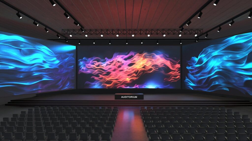 DISEÑO EXTERIOR de tu sala de congreso o evento virtual hiperrealistas con animación